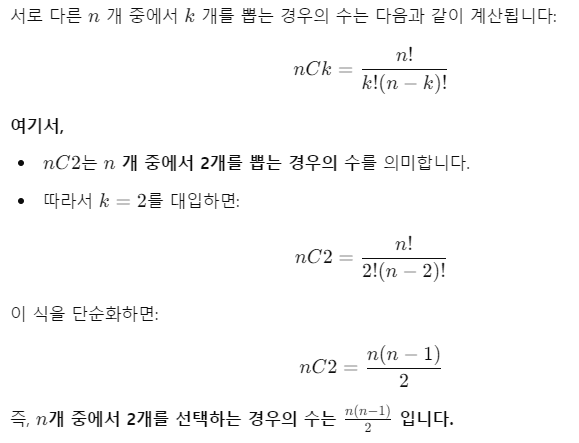 ㄴ (동일한 n 개중 2개를 뽑는 경우의 수) 를 생각하면 된다.